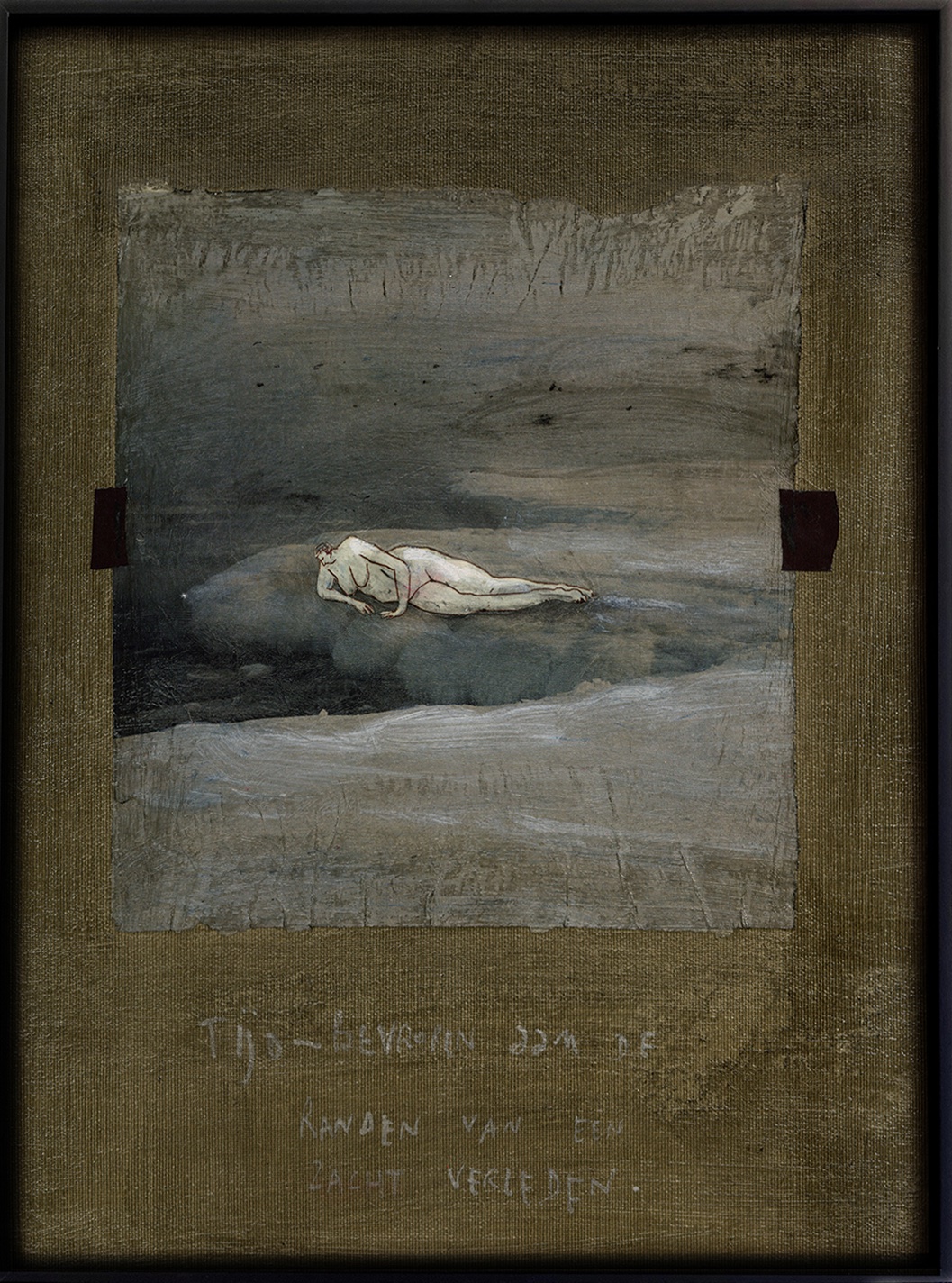 Verkocht #936 Schilderkunst Sabien Clement Tijd Nog beschikbaar: Uniek Materiaal: Collage, vernis, verf, inkt / incl. kader Afmetingen: 39.7cm x 29.5cm x 1cm